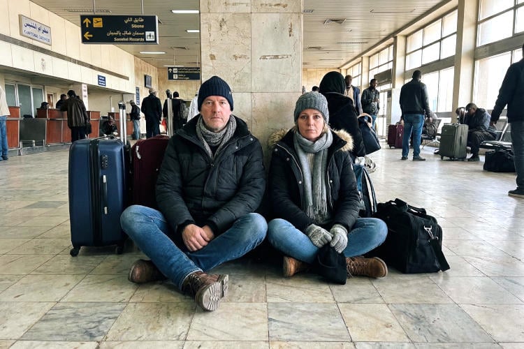 KHARTOEM - Nederlanders die vanwege de extreme kou naar het zuiden proberen te vluchten, lopen op meerdere plekken vast. De rechtse regering van Soedan heeft besloten om de grenzen per direct te sluiten voor kouvluchtelingen die asiel willen aanvragen. Tussen de duizenden gestrande reizigers bevindt zich het Arnhemse echtpaar Ron en Frederike Klaassen, dat al drie dagen bivakkeert in de transitzone van de luchthaven in Khartoem.